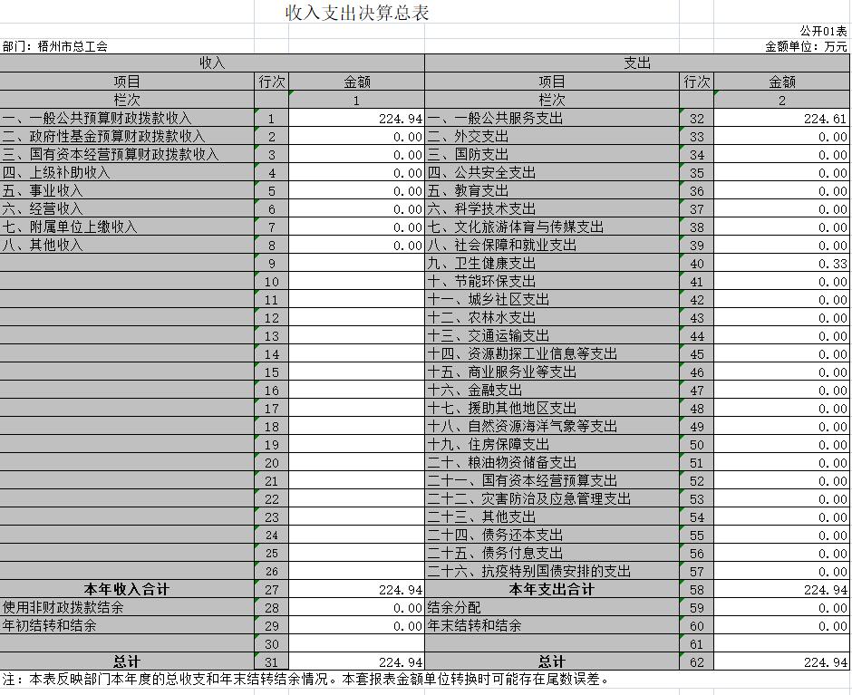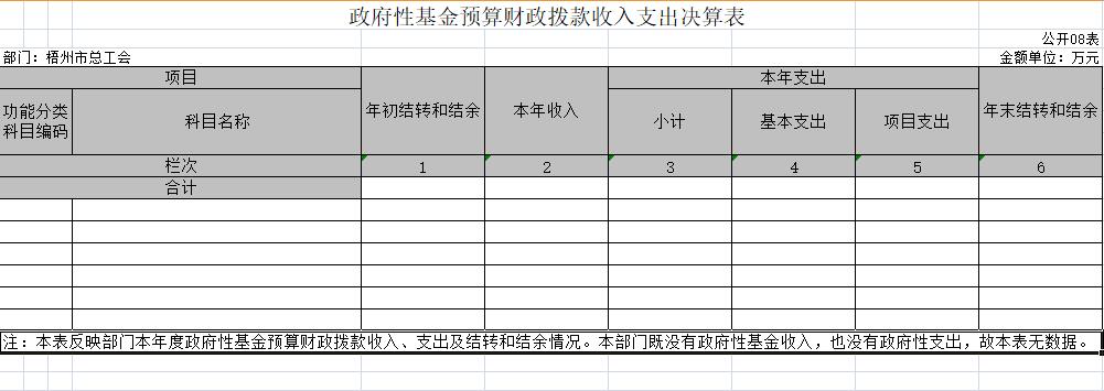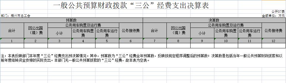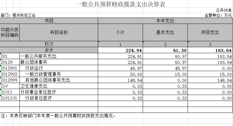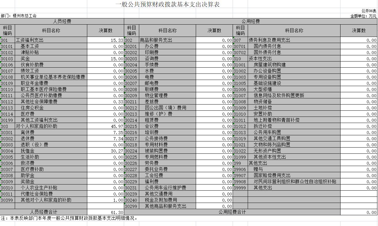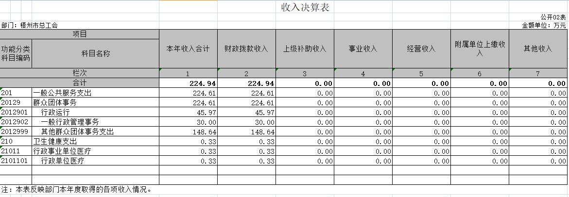 梧州市總工會(huì)2020年度部門決算公開表樣