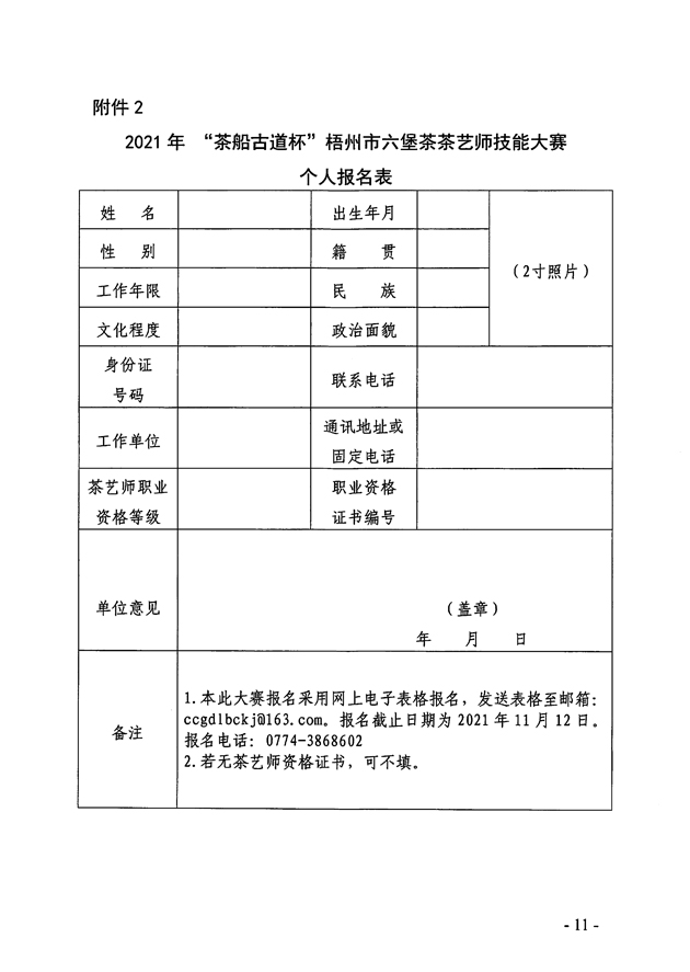 附件2-2021年 “茶船古道杯”梧州市六堡茶茶藝師技能大賽個(gè)人報(bào)名表.docx