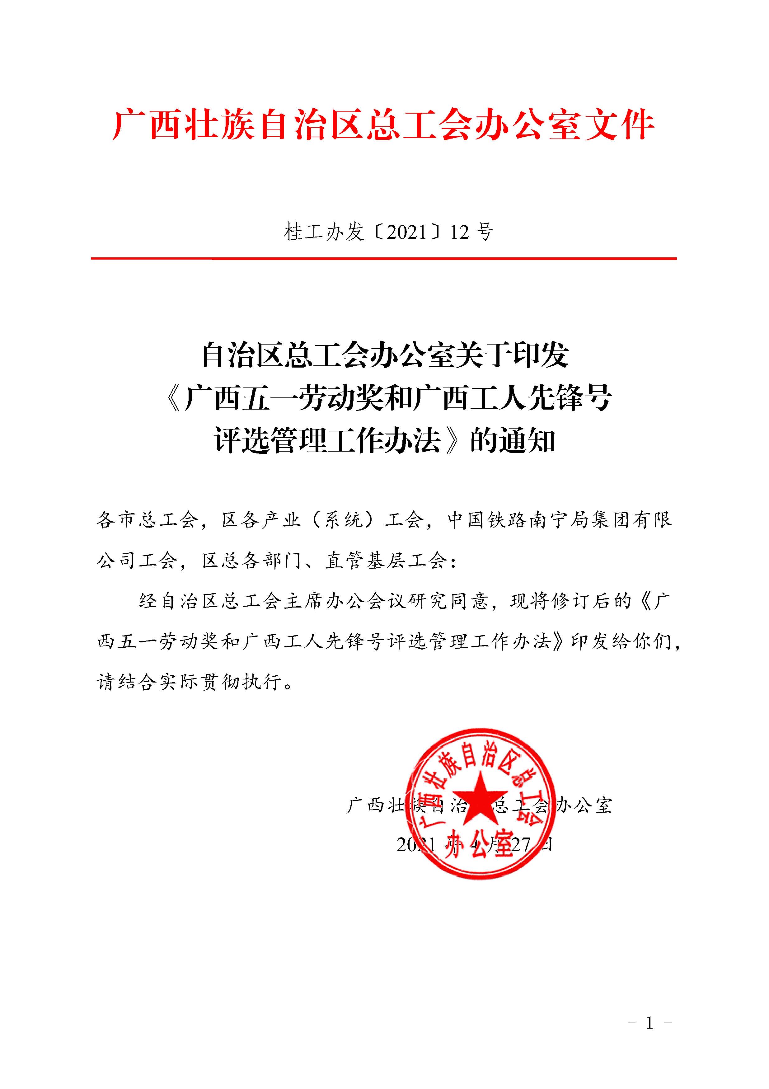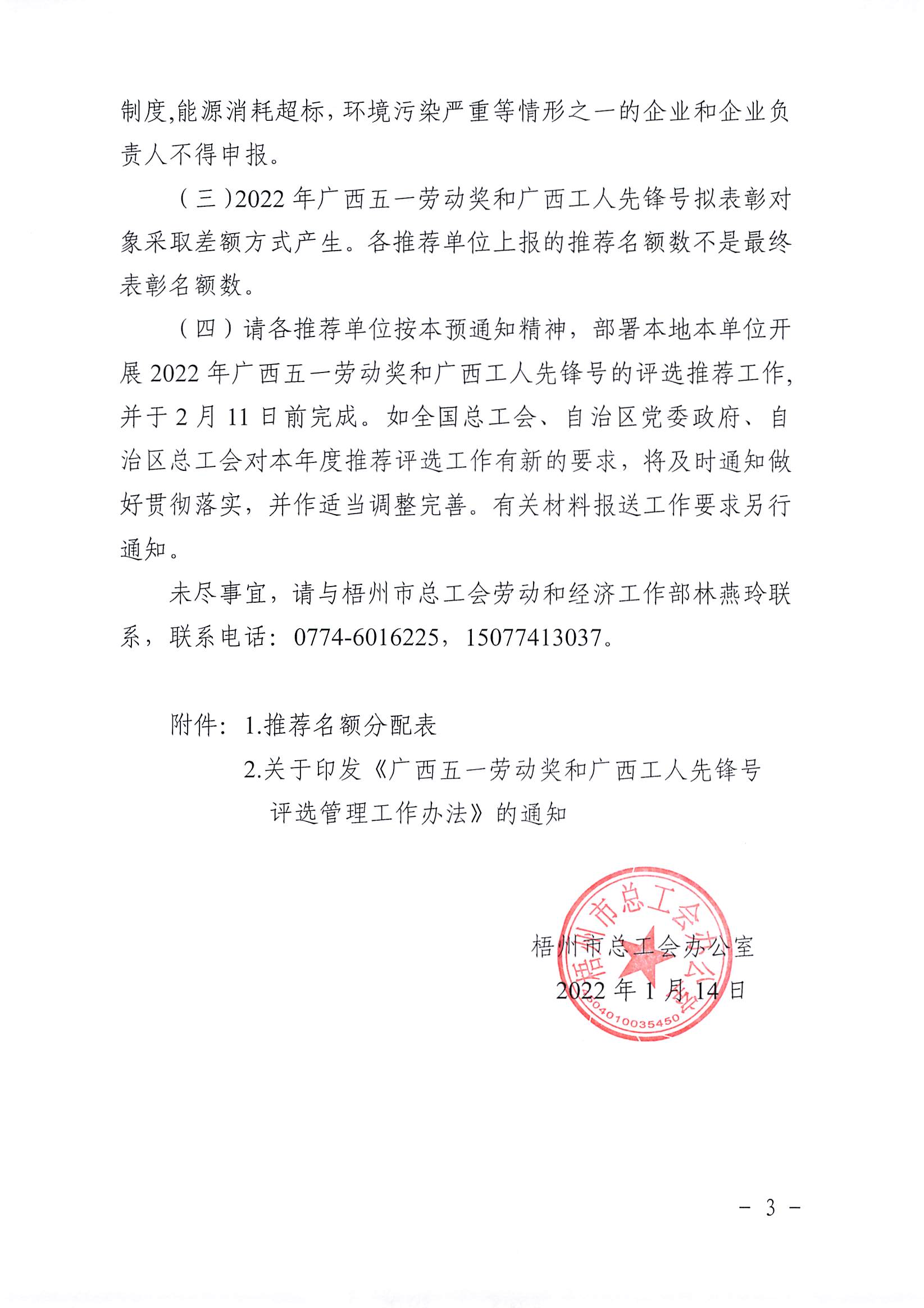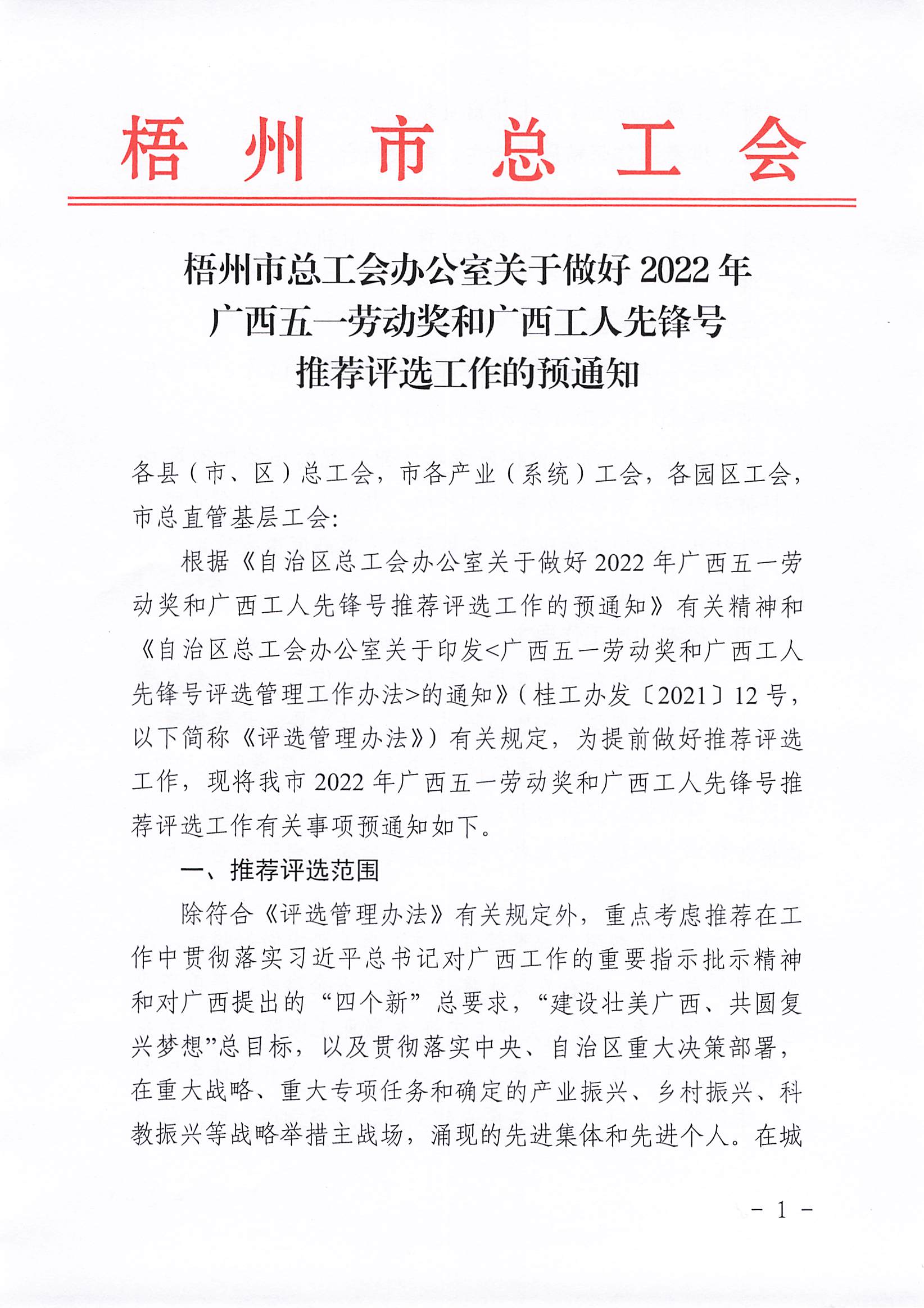 梧州市總工會辦公室關于做好2022年廣西五一勞動獎和廣西工人先鋒號推薦評選工作的預通知