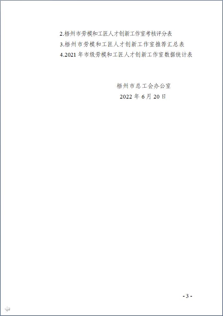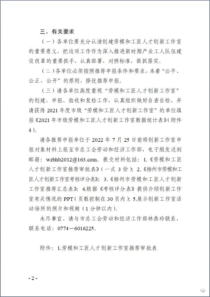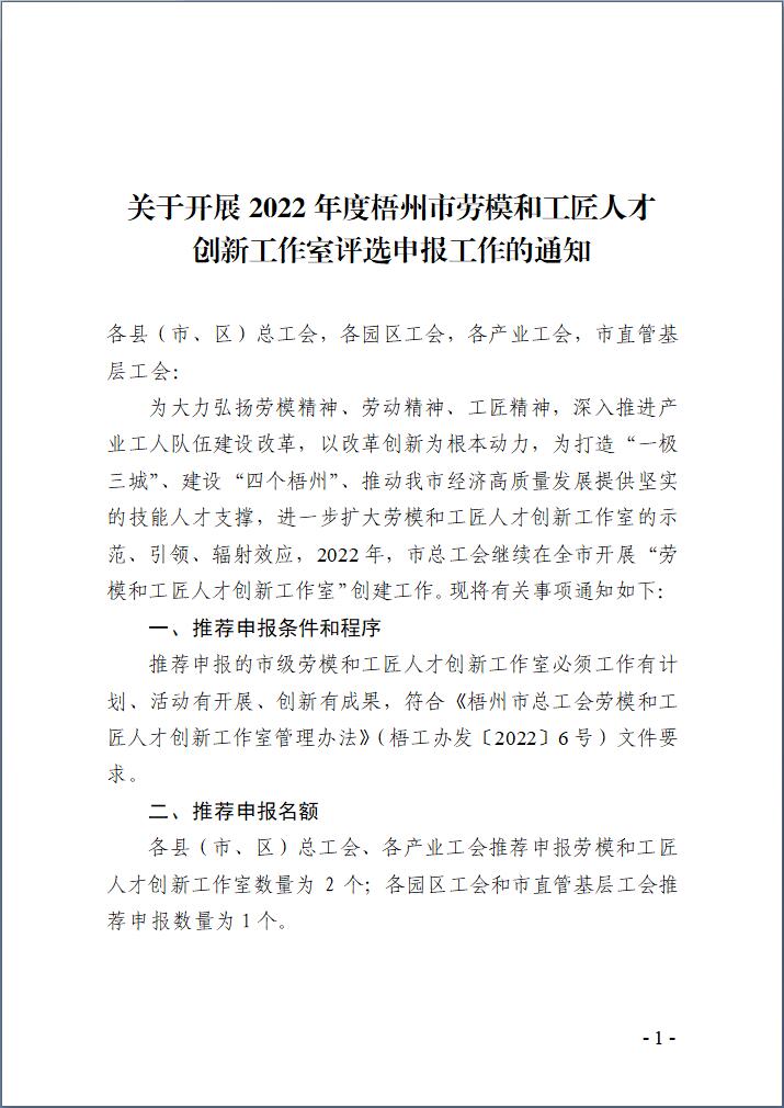 關(guān)于開(kāi)展2022年度梧州市勞模和工匠人才創(chuàng)新工作室評(píng)選申報(bào)工作的通知