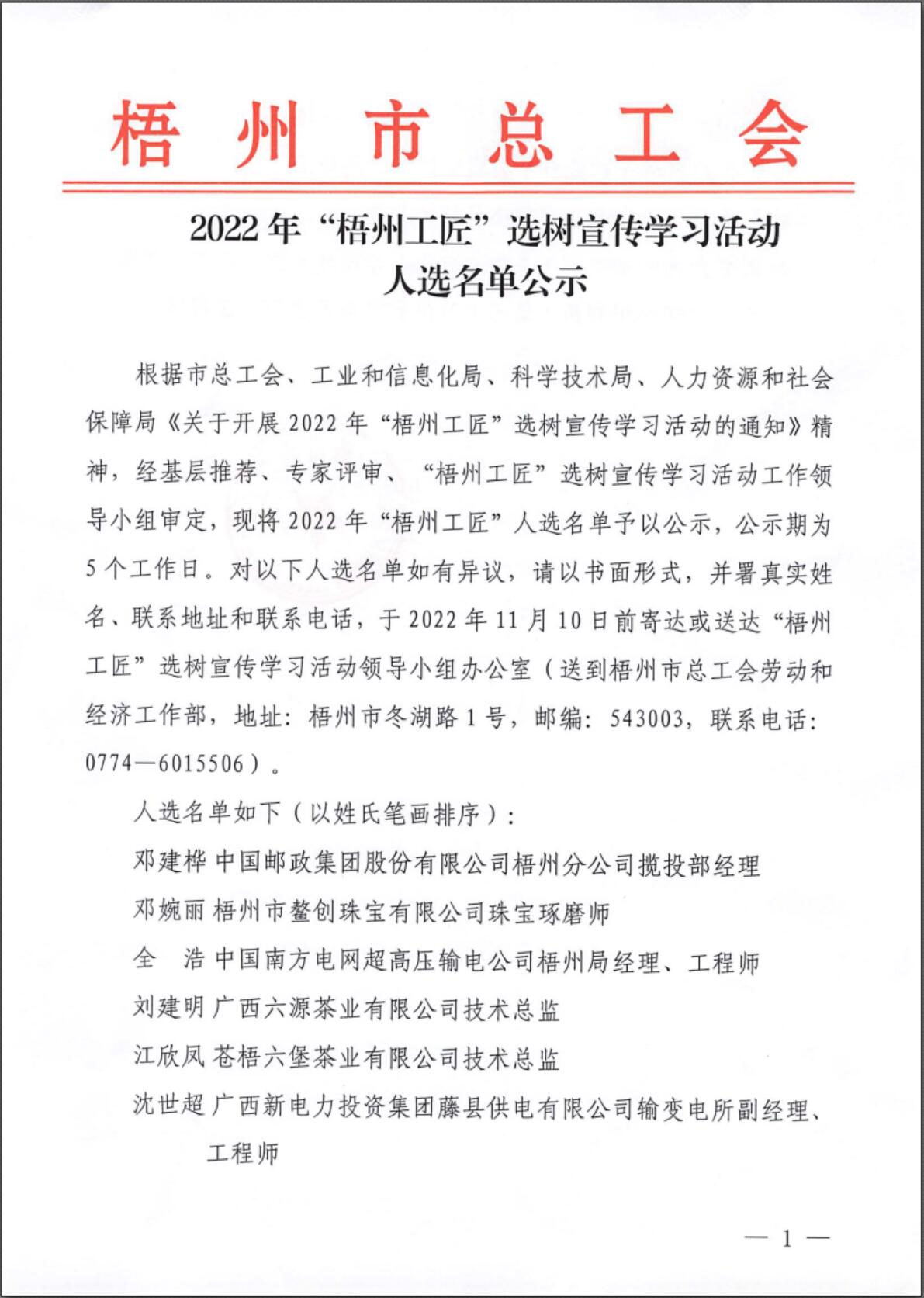 2022年“梧州工匠”選樹宣傳學(xué)習(xí)活動(dòng)人選名單公示