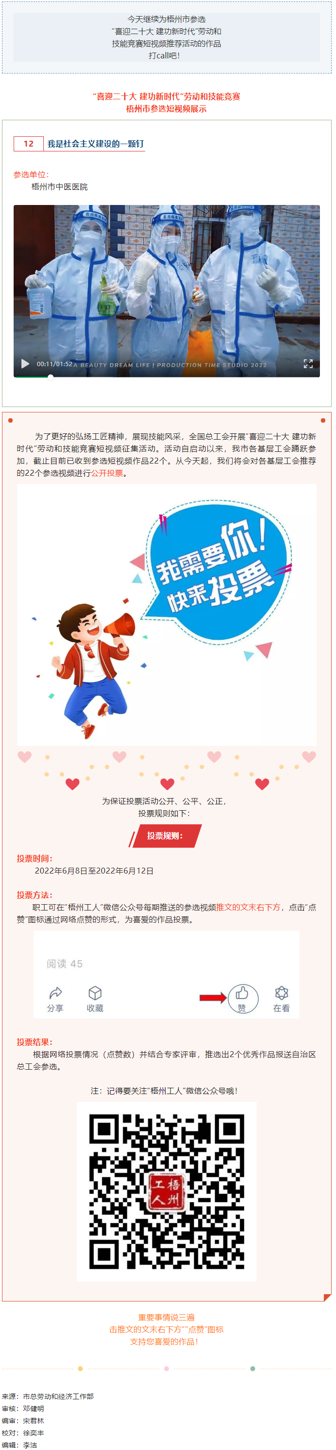 梧州市中醫(yī)醫(yī)院參選作品丨“喜迎二十大 建功新時(shí)代” 勞動(dòng)和技能競(jìng)賽短視頻投票活動(dòng)開始啦!