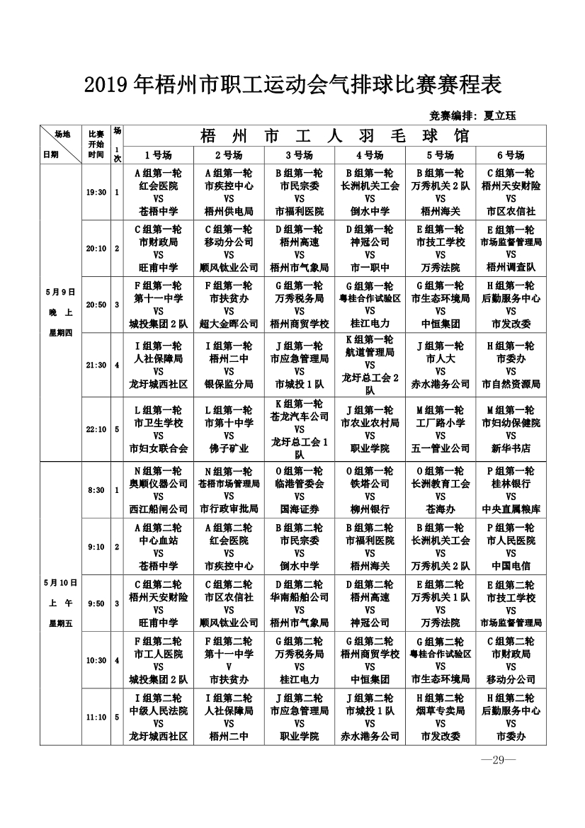 2019 年全市職工氣排球男女子混合比賽秩序冊