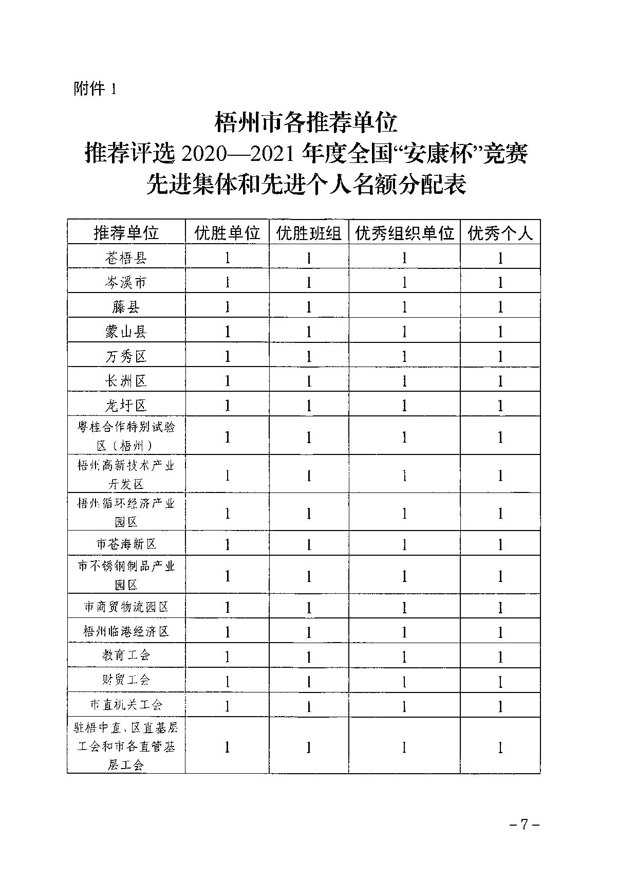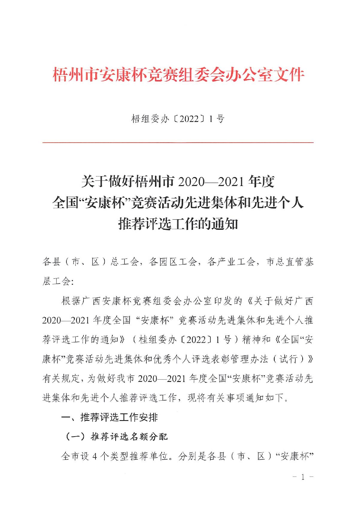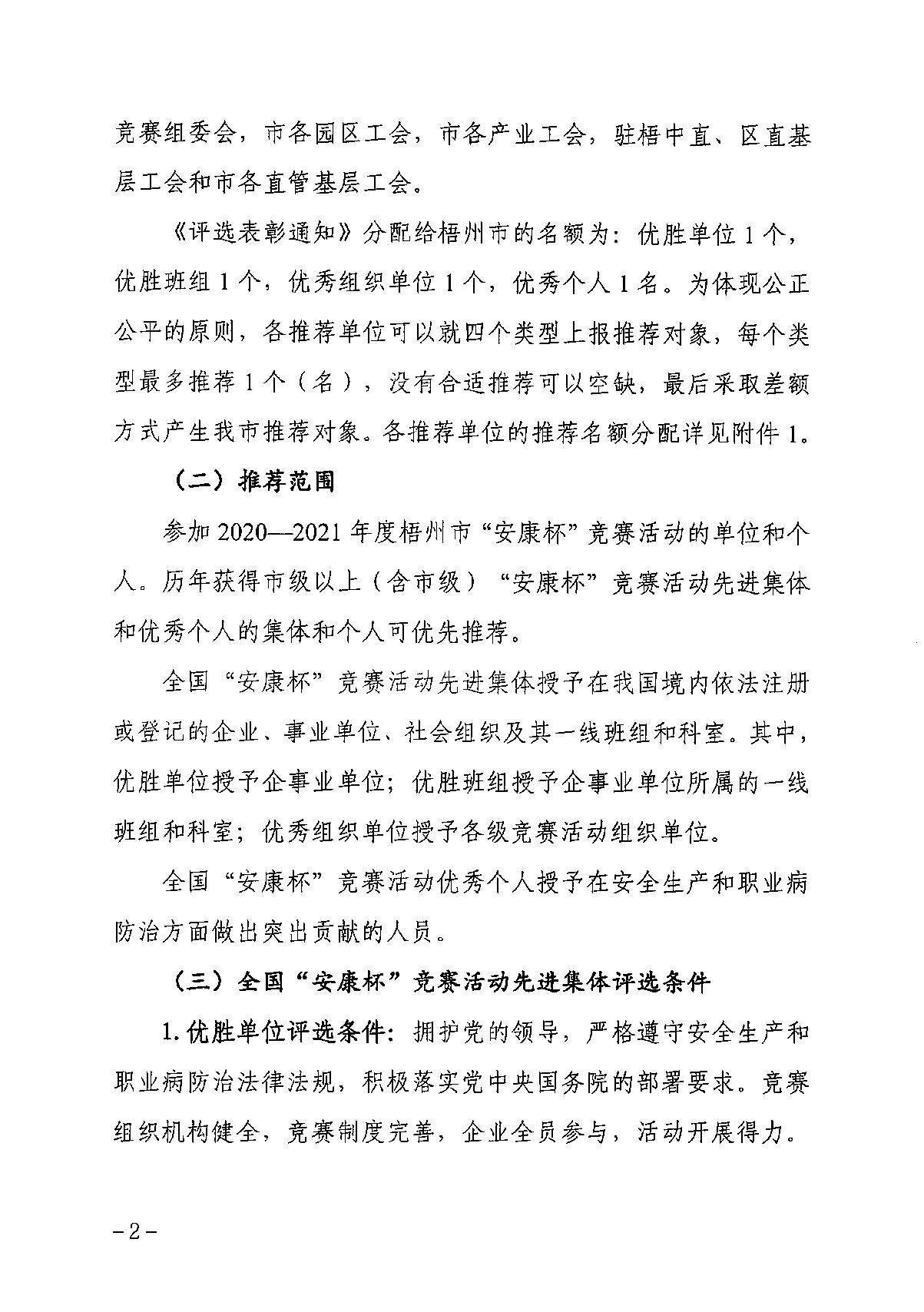 關(guān)于做好梧州市2020—2021年度全國安康杯競賽活動先進(jìn)集體和先進(jìn)個人推薦評選工作的通知