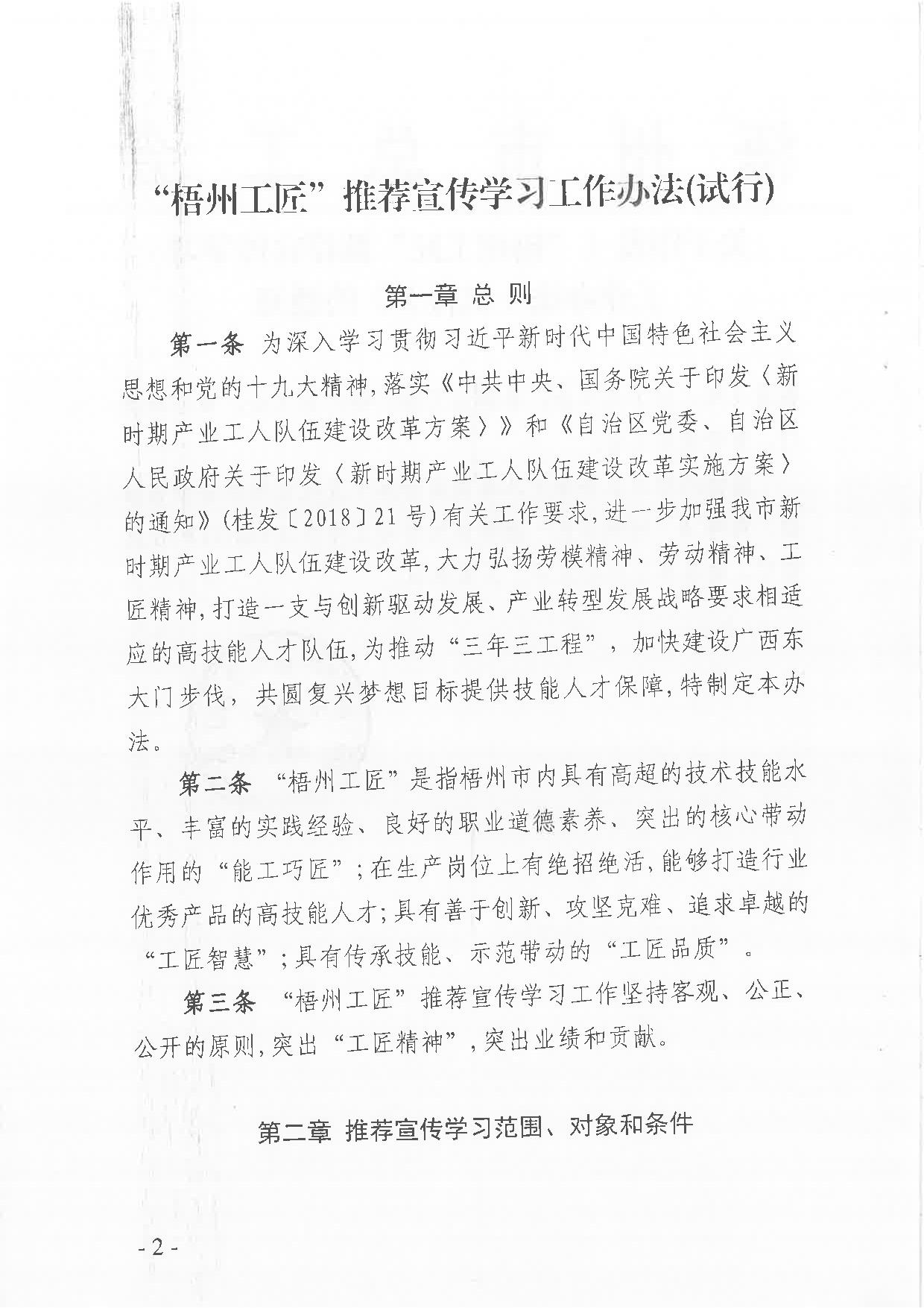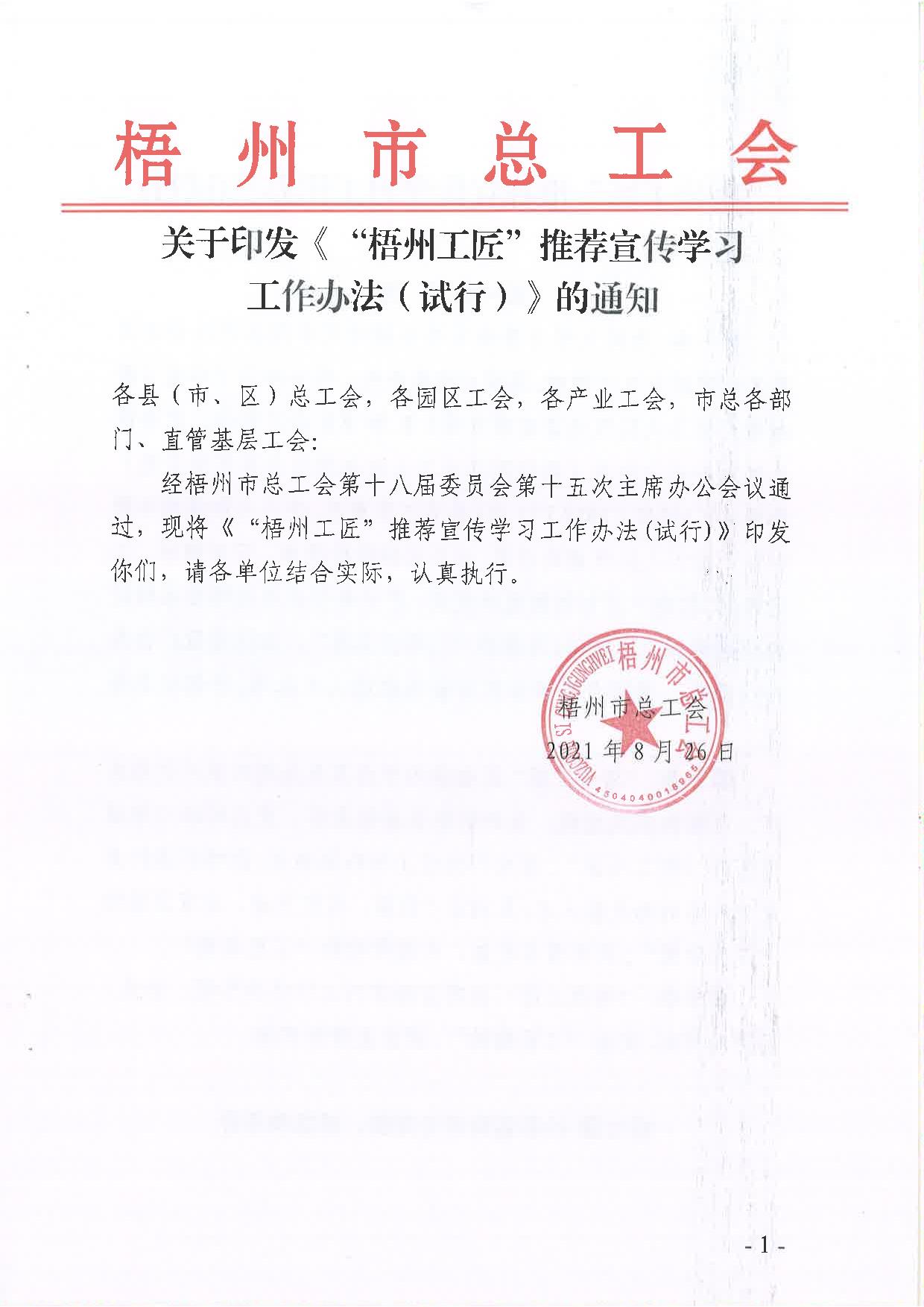 關(guān)于印發(fā)《“梧州工匠”推薦宣傳學(xué)習(xí)工作辦法(試行)》的通知